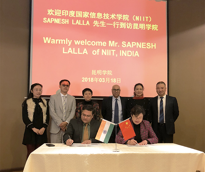 熊晶副校长对赛普勒斯•拉乐先生的到访表示热烈地欢迎,并就NIIT与昆明学院IT专业合作项目进行了深入的交流,双方达成合作共识并签署合作备忘录。